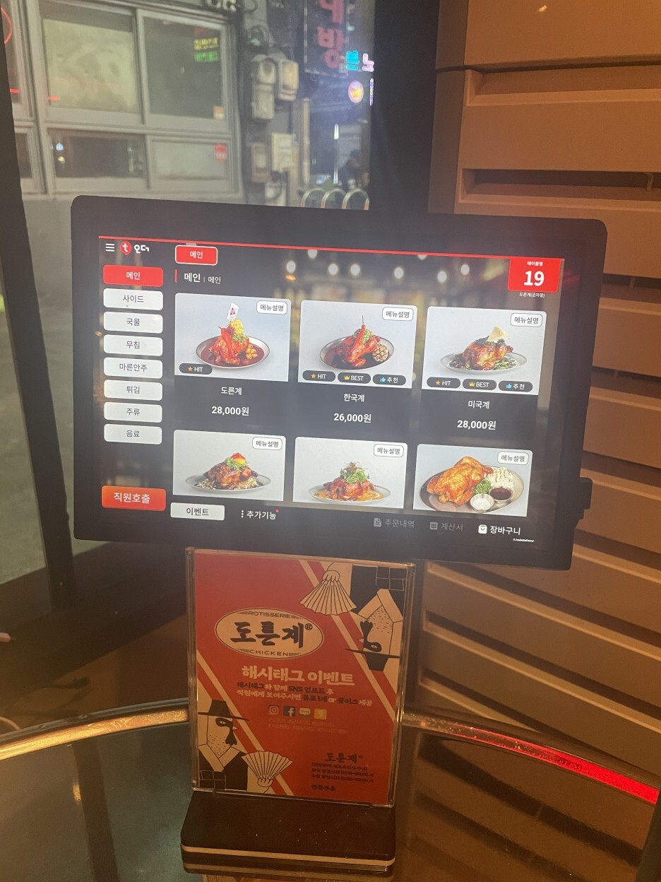 테이블에 부착된 태블릿 메뉴판으로 편리하게 주문이 가능하다!
